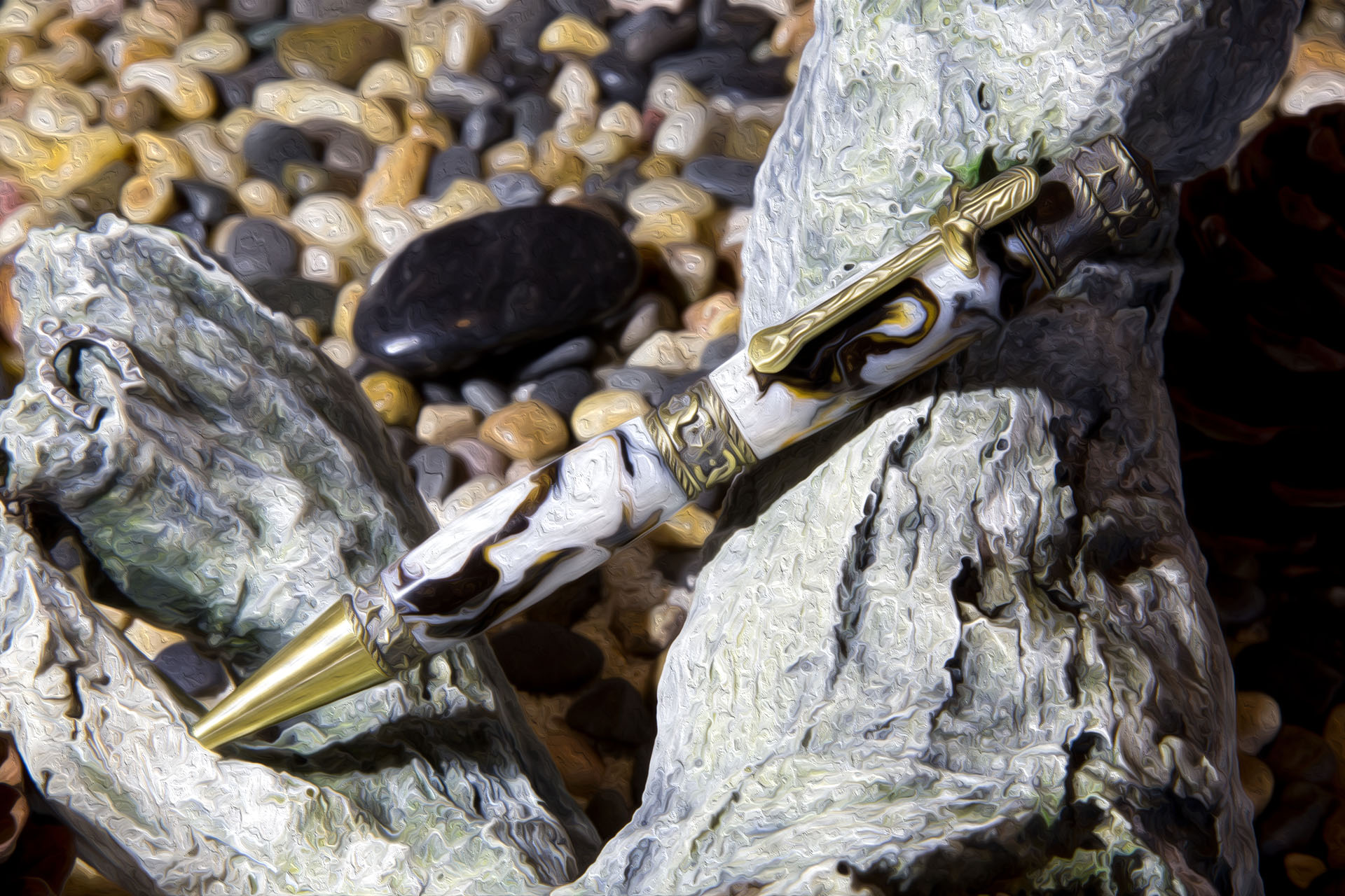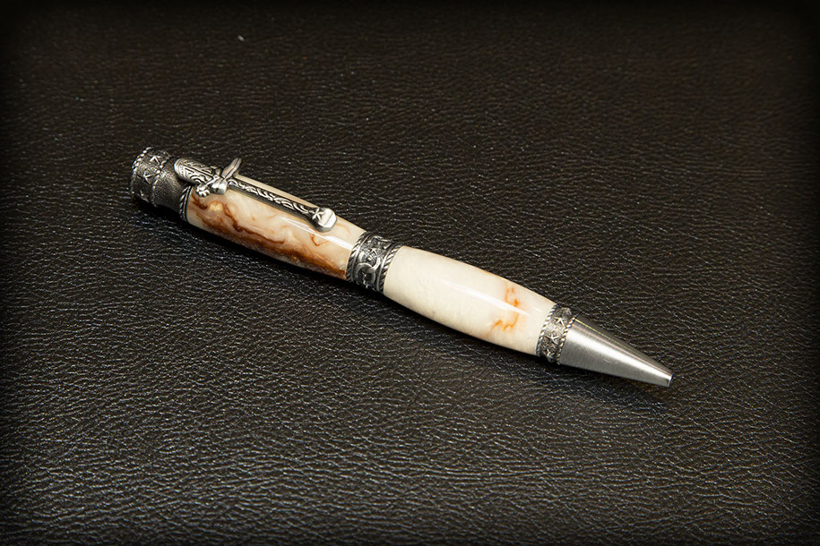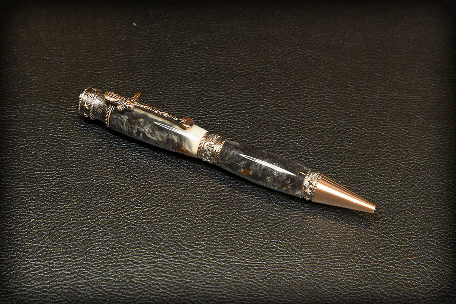 The American cowboy lives what he believes, and does not worry about conforming to anyone's mold. At the same time, a cowboy is a man of substance, strength and courage. The cowboy symbols on this pen are evidence of the real culture of hard work, horsemanship, and individualism. A replica of a tooled leather boot on top of the clip is the ultimate symbol of this North American icon. The interlocking horseshoes around the center band are symbol of luck. While the stars throughout the pen design are a nod to the sheriffs of the Wild West, and stand for law, order and good will. Your gift recipient doesn't need to be a Cowboy to appreciate this pen; the symbolism of Cowboy and the Wild West is admired throughout the world. Smooth writing performance with a ParkerĀ® style refill.