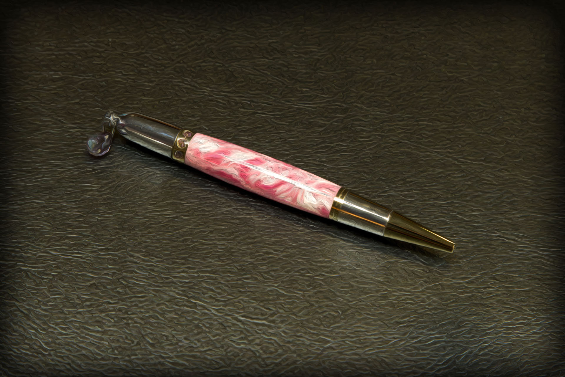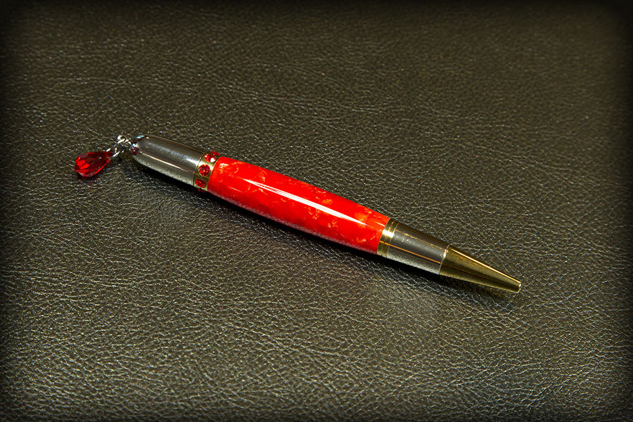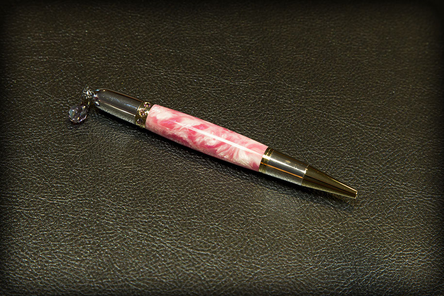 The stylish new Diva Charm Pen series. The caps features genuine clear Swarovski® crystals on the cap band and an attractive clear Swarovski® crystal charm suspended off the cap end. This beautiful, smooth writing pen is sure to get noticed.