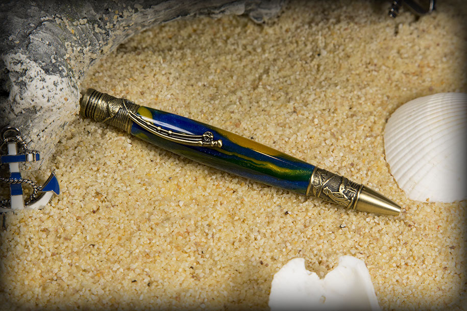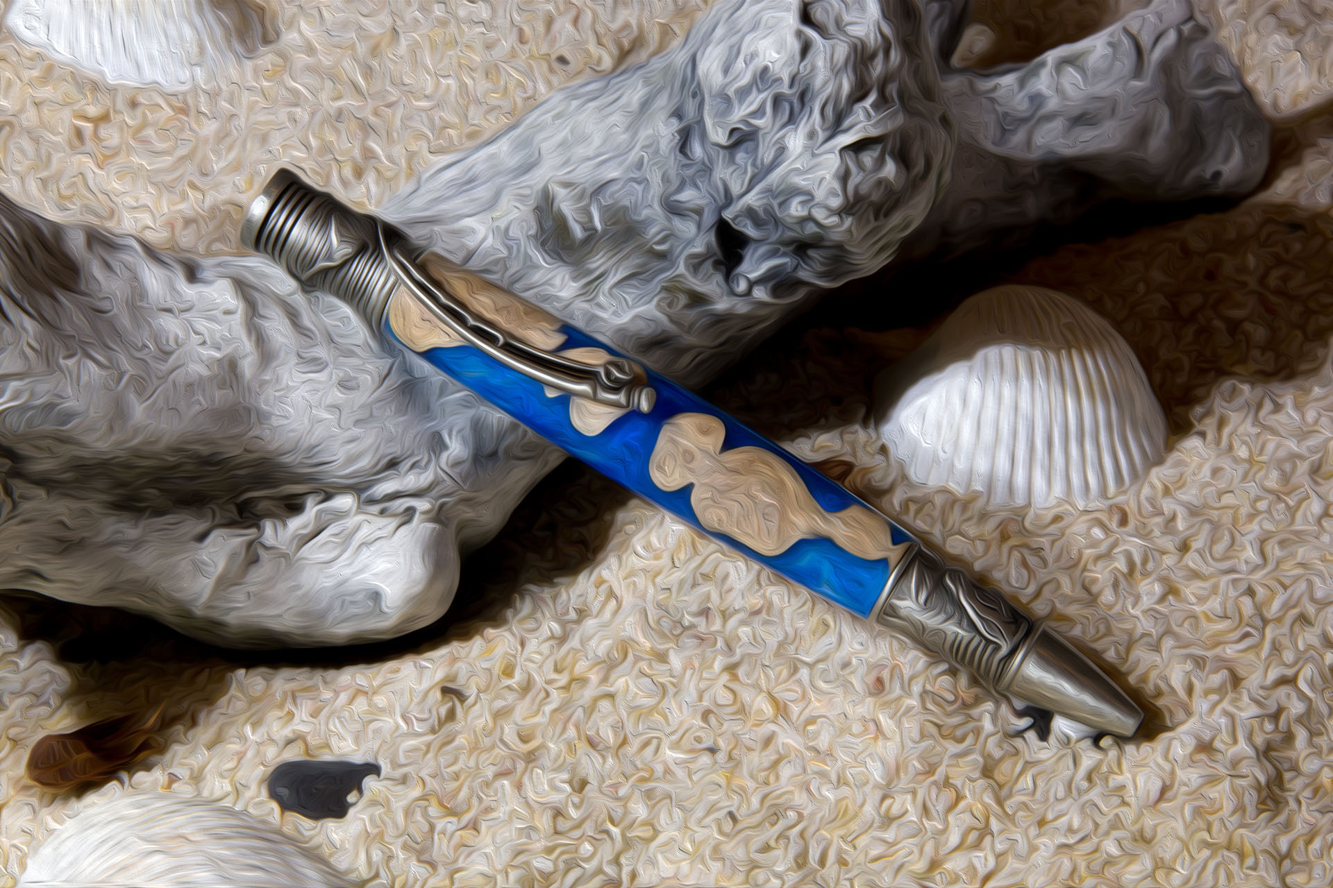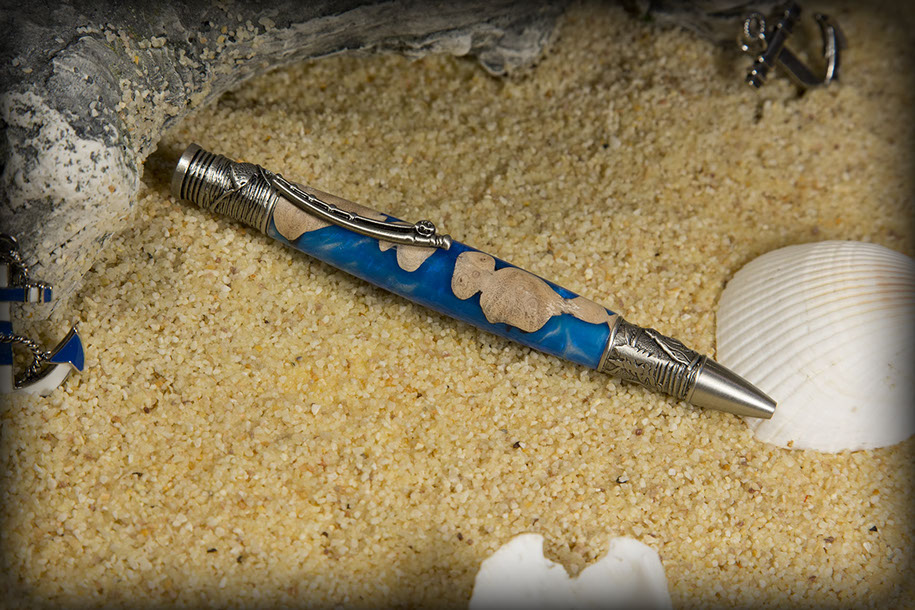 Here is a gift that will wow any fly fisherman and capture the essence of the sport they love. Authentic details abound; the pen top features a traditional open spooled fly fishing reel with detailed fly line on the spool. Below the reel is a cast, engraved trout that is caught and fighting in the fly line. The pen clip is a fly fishing rod that you can align below the trout to replicate the trout fighting in the line and capture the feel of the fight as you reel the trout in. Finally, the pen tip features a beautiful 360-degree outdoors scene of a lone fisherman casting his line in front of an intricately detailed mountain backdrop. Uses the popular Parker style refill.